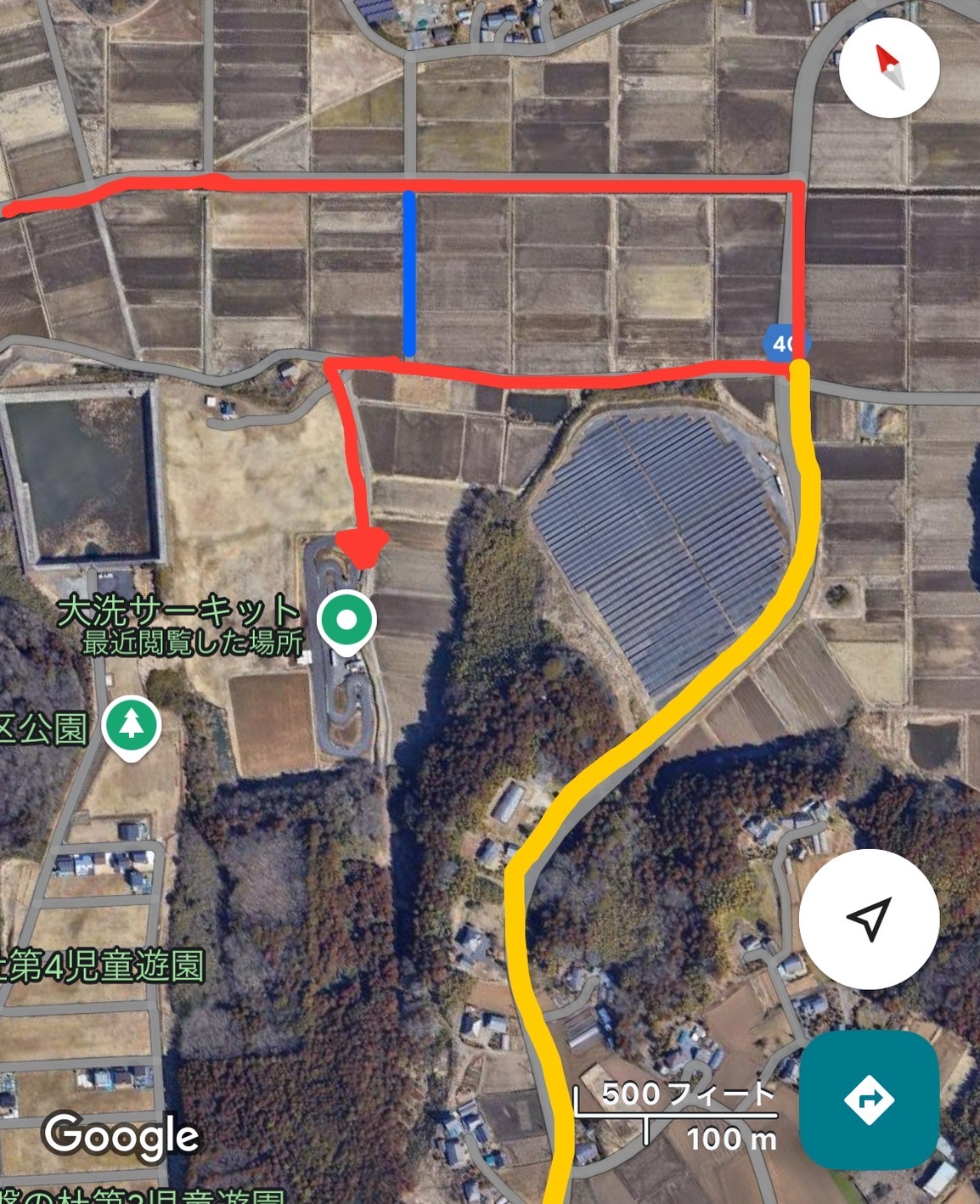 上記の青い線の道は細くて危ないので、赤か黄色の線からいらしてください!